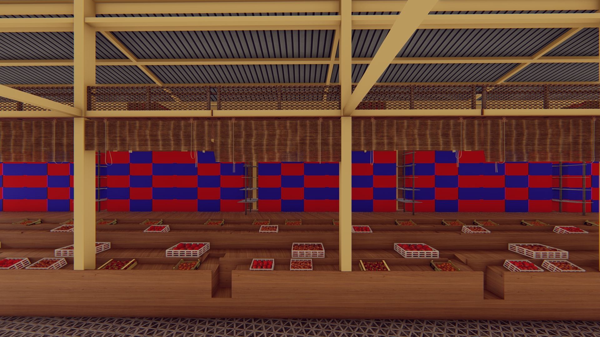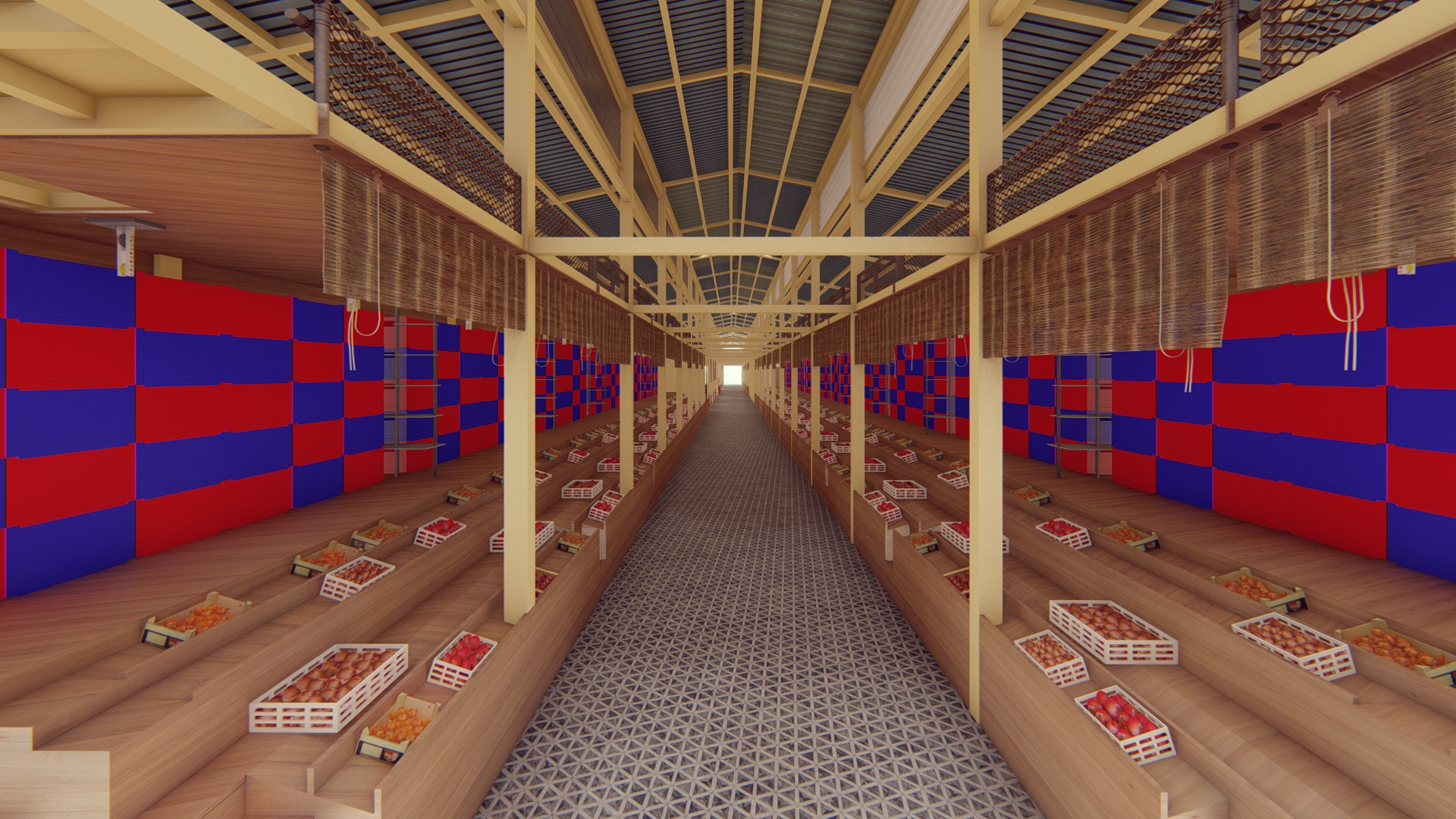 The entire structure, including the vendor stalls, is constructed using a steel frame architectural style. This not only ensures the durability of the facility but also lends a modern and aesthetically pleasing touch to the marketplace.